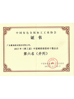 2017中國(guó)建筑鋁型材十強(qiáng)企業(yè)