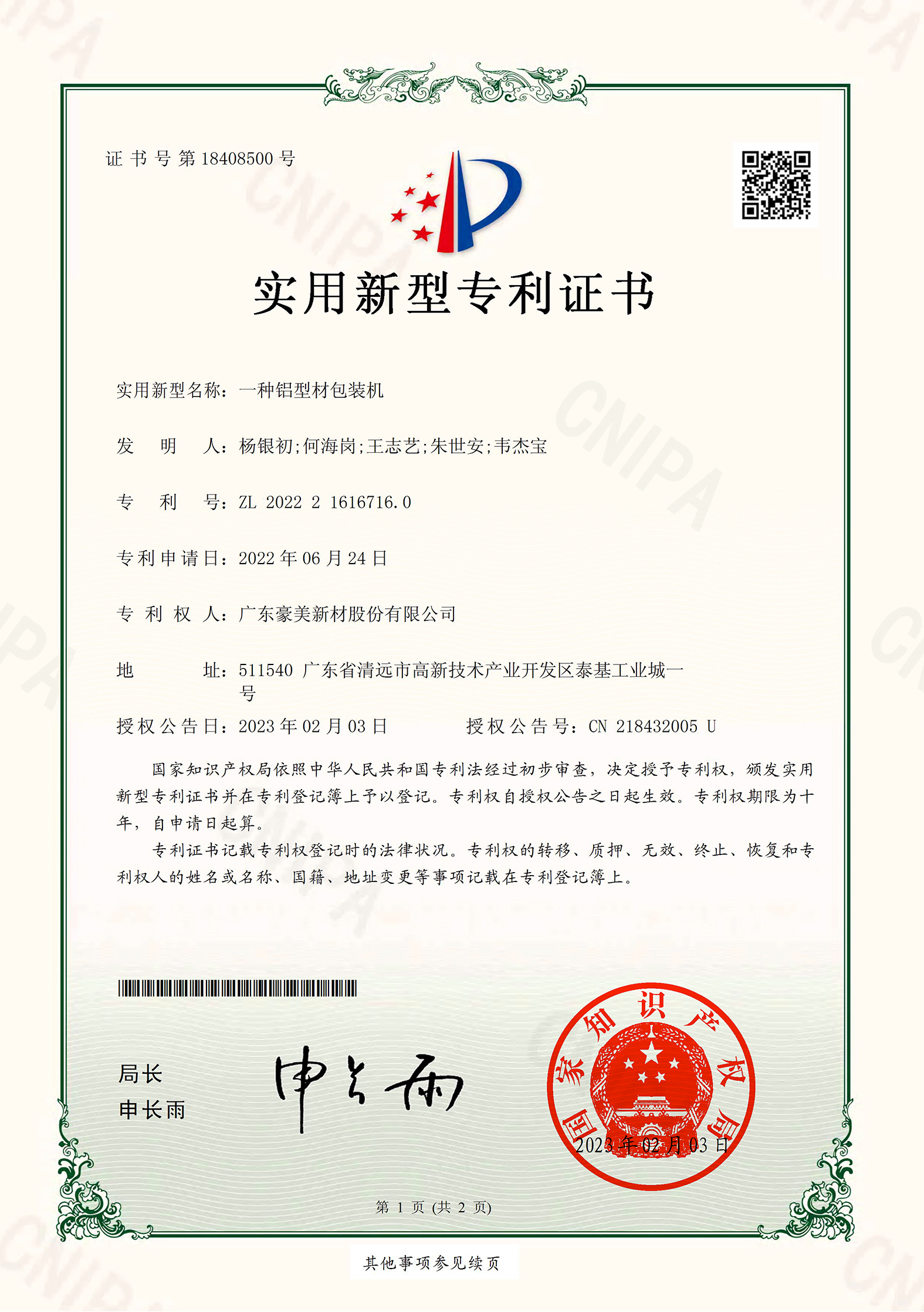 公司擁有技術(shù)優(yōu)勢、產(chǎn)品質(zhì)量優(yōu)勢、較高的市場知名度和廣泛的客戶資源。公司長期致力于鋁合金材料的研發(fā)、生產(chǎn)、銷售和服務(wù),掌握了多項核心技術(shù),擁有多項專利。目前豪美新材公司擁有專利共計228項,其中發(fā)明專利17項。
