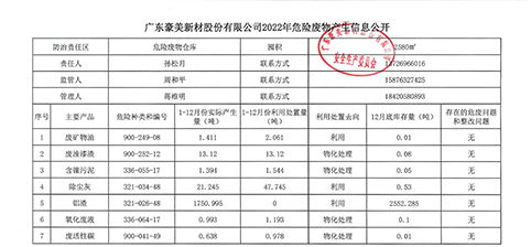 豪美新材危險廢物產(chǎn)生信息公開