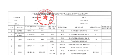 廣東豪美精密制造有限公司2024年上半年危險廢物產(chǎn)生信息公開