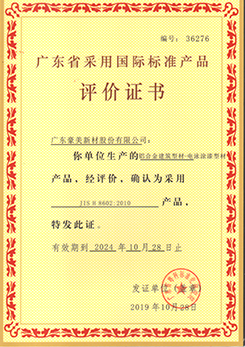 噴粉型材評(píng)價(jià)證書