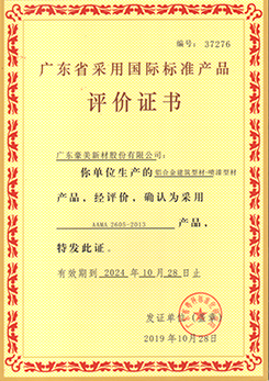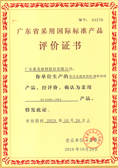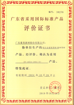 噴漆型材評(píng)價(jià)證書
