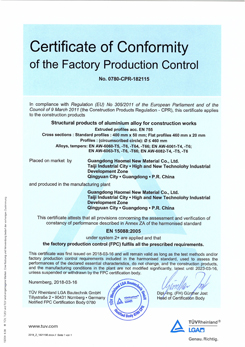 隔熱型材評(píng)價(jià)證書