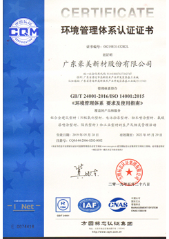 公司在2005年已通過了ISO9001質(zhì)量管理體系認(rèn)證、2011年通過了ISO14001環(huán)境管理體系、ISO28001職業(yè)健康安全管理體系(新版為ISO45001)認(rèn)證以及在2012年通過了ISO/TS16949汽車行業(yè)質(zhì)量管理體系認(rèn)證。