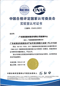 我司的檢測(cè)中心在2012年通過了國(guó)家認(rèn)可實(shí)驗(yàn)室CNAS認(rèn)證。